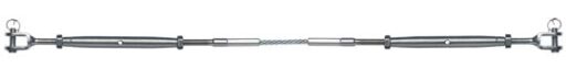 Turnbuckle with two swaged external thread ends for rope up to 12mm.