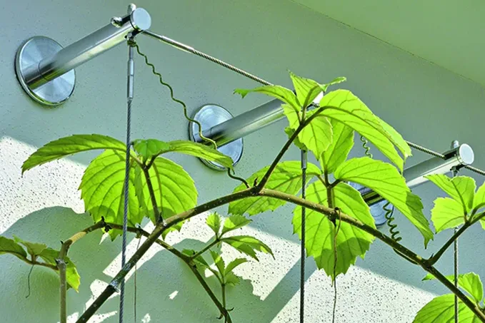 Design versatility and longevity for large-scale and mid-size green wall facades with stainless steel cable and mesh.