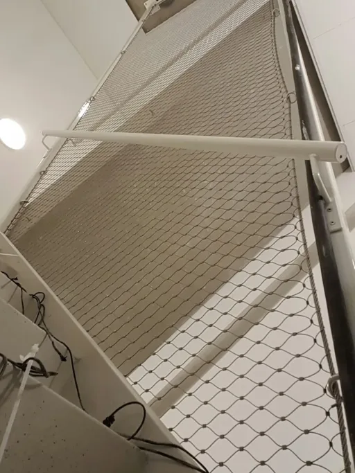 The stairwells in which the mesh is used are almost always unique in size. Every stairway compartment is slightly different, but due to the flexibility of the cables, every stairwell can be secured with tension cable mesh. Applications apply to both new and existing stairwells.