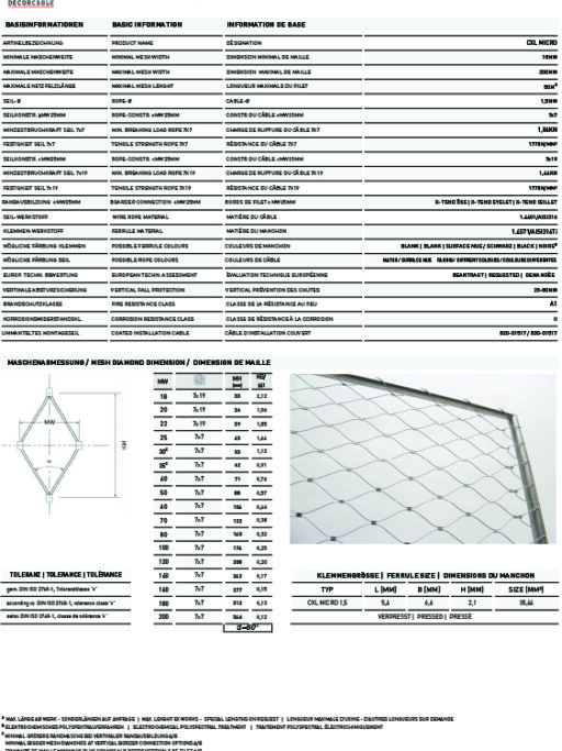 The cable mesh is made of stainless steel AISI316 (also known as 1.4401 or A4 quality). We can guarantee this quality 100% through European certificates. For this application, this steel quality is technically the best solution for price and delivery time.