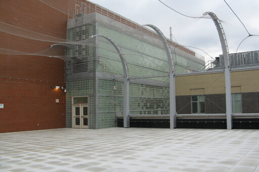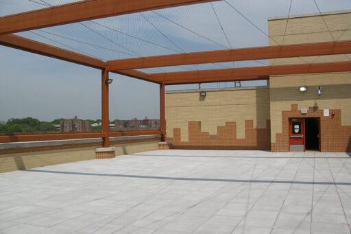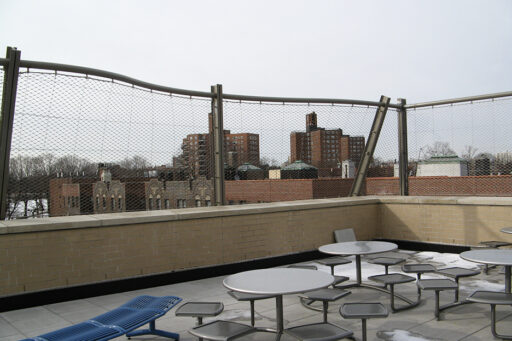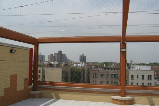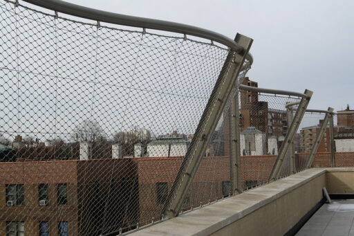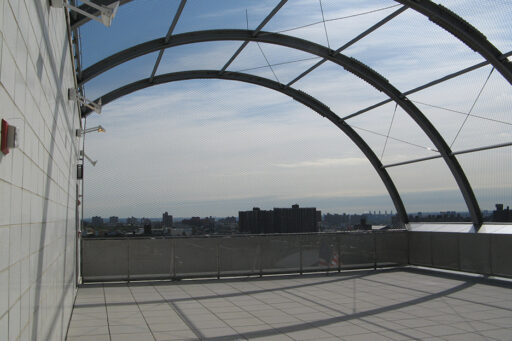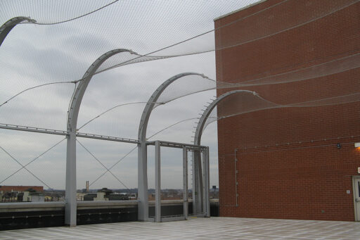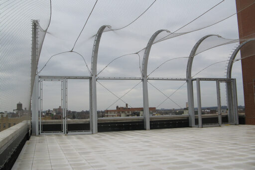 Our stainless steel cable mesh is increasingly used as transparent enclosures on rooftop patios and children's play areas. The mesh is not only suitable for stopping balls, but also serves as fall protection. Thanks to the transparent appearance of the cable mesh, the out-of-doors nature of the space is maintained. Because large dimensions of mesh are possible, relatively little steel construction is required, which means that the costs remain low. Below are several examples of our rooftop projects.